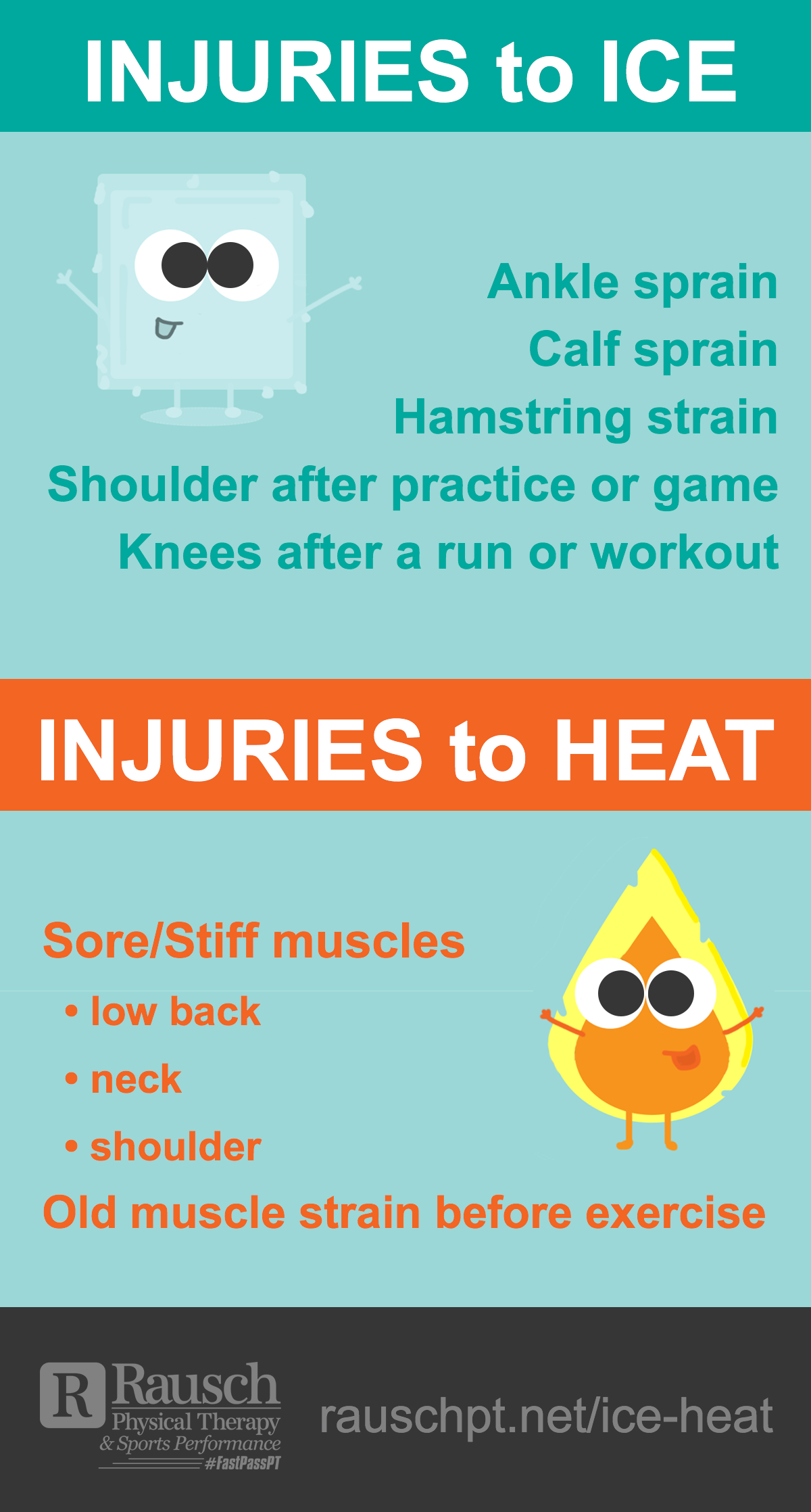 Whether you are using ice or heat, , ice and heat application should be part of an all-encompassing rehabilitation program – including soft tissue mobilization, strengthening and re-training of motor control and movement patterns.